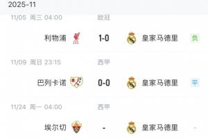 体育资讯11月10日讯 西甲第12轮,皇马0-0巴列卡诺。
