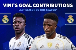 体育资讯11月11日讯 德国转会市场统计了维尼修斯上赛季和本赛季的数据,这位皇马前锋的效率有所下滑。