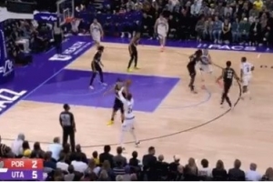 首次出手就命中!杨瀚森低位接球背打 连续转身梦幻脚步打进!