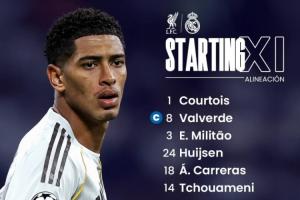 欧冠第4轮,皇马客战利物浦首发11人